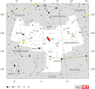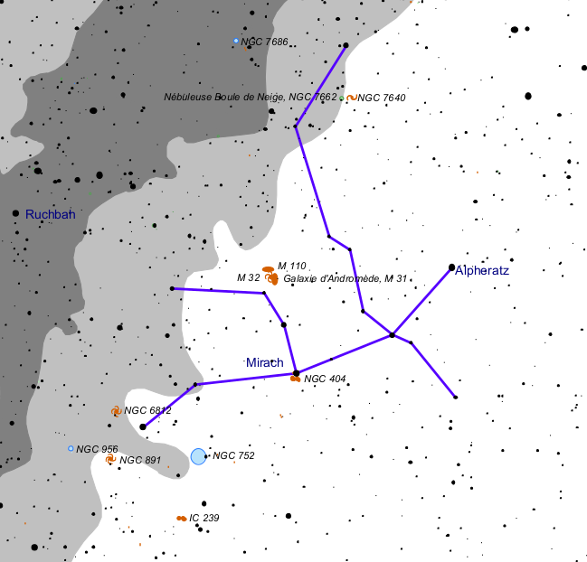 And, puis la Géante rouge Mirach ( β) , l’étoile double Almach(ϒ), et la petite