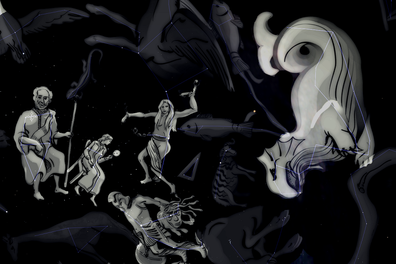 une Bestiole marine pas commode, Cetus, raser l’Ethiopie. Jusque-là, normal.
