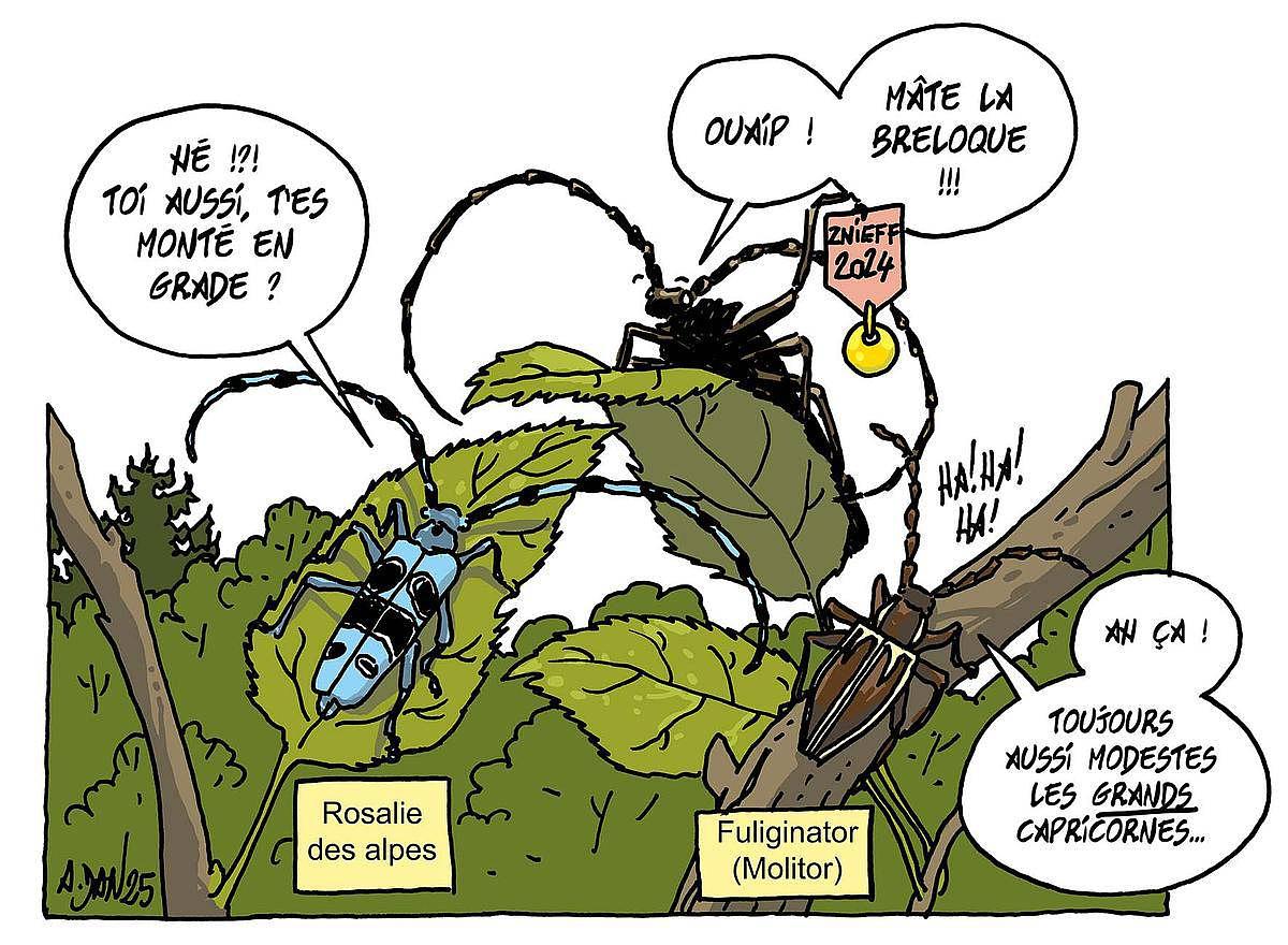 L’inventaire des Zones naturelles d’intérêt écologique, faunistique et floristique (ZNIEFF) vise à identifier des espaces naturels à la biodiversité remarquable. Cela ne revêt pas de caractère réglementaire, mais appel à prêter attention en cas de projet d’aménagement. La définition des ZNIEFF repose sur le recensement d’espèces qui figurent sur une liste d’espèces dites « déterminantes ZNIEFF ». Or aucun coléoptère* n’était jusqu’ici déterminant en Franche-Comté, et la liste de Bourgogne était devenue en partie obsolète du fait de l’amélioration de la connaissance. En 2024, une liste Bourgogne-Franche-Comté pour les longicornes a été validée par le Conseil scientifique régional.