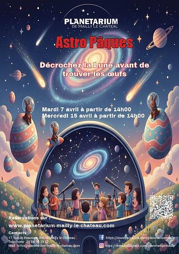 Et si les cloches n'étaient pas les seules à survoler nos têtes ? Cette année, Pâques prend une dimension spatiale !Venez vivre une aventure unique où l'astronomie rencontre la gourmandise. Au programme : ✨ Séance sous les étoiles : Une immersion pour découvrir les secrets du ciel nocturne. ???? Expériences scientifiques "Spécial Œufs" : Pourquoi la Terre est-elle ronde comme un œuf ? Peut-on faire décoller une fusée-œuf ? ???? Défis & Découvertes : Un voyage interactif pour comprendre l'Univers tout en s'amusant.Une sortie familiale la tête dans les étoiles... et le chocolat n'est jamais bien loin !