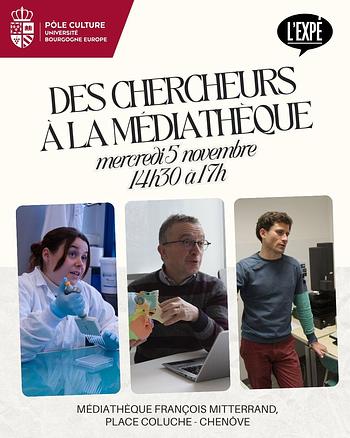Venez rencontrer trois chercheurs à la médiathèque de Chenôve ! Ce sera l'occasion de discuter de leur thématique de recherche de manière conviviale, autour d'objets insolites sortis de leur labo.