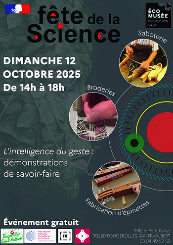 Nous vous donnons donc rendez-vous le dimanche 12 octobre, de 14h à 18h, pour rencontrer sur le parcours de visite du musée celles et ceux qui font vivre ces savoirs et profiter de leurs démonstrations : fabrication d’épinettes avec l’association L’épinette des Vosges, intervention d’un sabotier, démonstration de brodeuses fougerollaises.