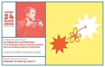 Questions d'éducation. Une conférence de Jean-Philippe Lachaux « La crise de l’attention… et sa possible résolution (en partie) par les neurosciences cognitives » et atelier enfants « Dormir, à quoi ça sert ? »